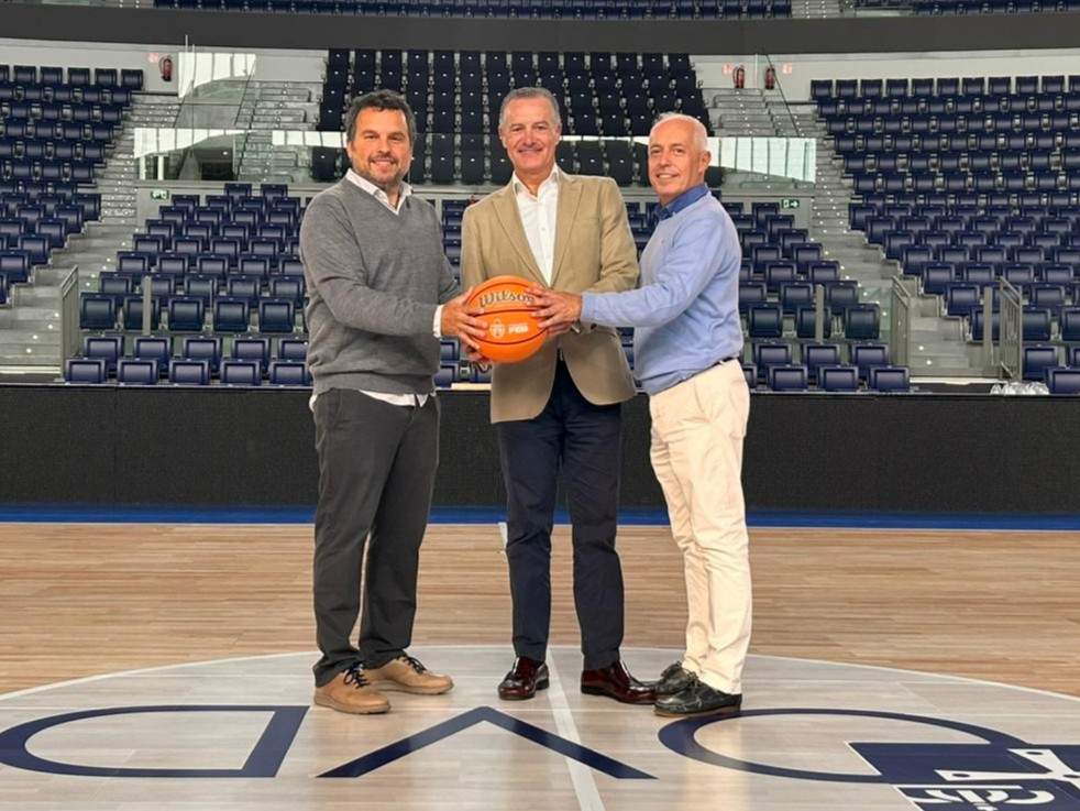 A la firma del acuerdo rubricada en el Palacio de los Deportes han acudido, Andrés Vázquez, presidente del Gremio de Joyeros y Relojeros de Asturias, Liam Swanton, directivo del OCB y su director general, Fernando García Céspedes.