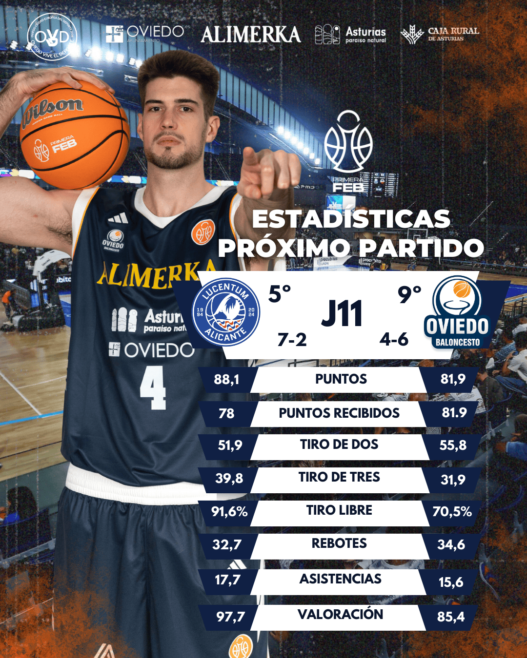 Así pues, y como ha destacado el técnico de Porriño en la previa, es hacer constante los básicos del juego carbayón para competir hasta el final. «Somos buenos en esos básicos, en rebotear, en correr, en defender. Si queremos tener opciones tenemos que jugar un partido de ese nivel físico, de dureza, intensidad, energía, rapidez…», ha incidido respetando las virtudes de un Lucentum pleno de calidad.