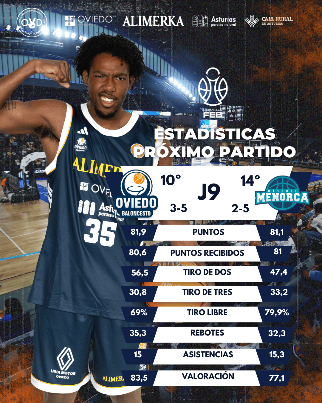 Así, Hestia Menorca añade a un juego exterior de por sí peligroso y anotador a dos piezas diferenciales en Primera FEB. Por dentro, Víctor Arteaga lidera un equipo que también domina las pinturas. Por ello, el Alimerka OCB tendrá que ser reconocible en sus principios de juego: Defensa, dureza, rebote y viveza en ataque.