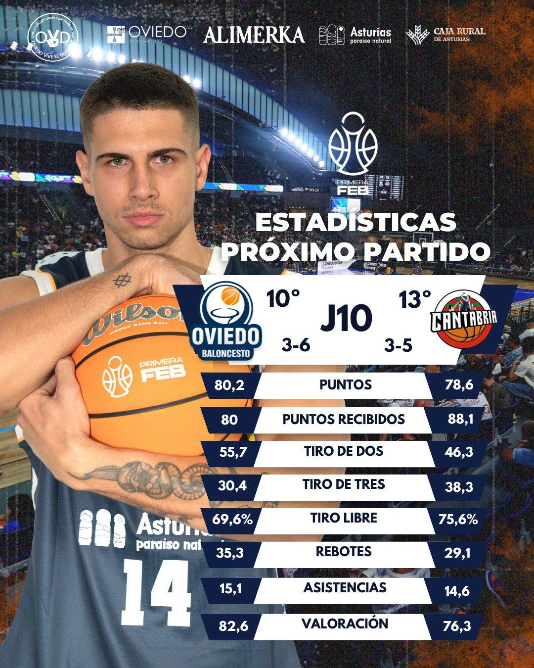El Alimerka Oviedo Baloncesto recibe este sábado, a partir de las 19:00 horas (La Liga +), a Grupo Alega Cantabria en el Palacio de los Deportes de Oviedo, en el encuentro correspondiente a la Jornada 10 de la Primera FEB. Será una cita importante para los carbayones, que buscan reencontrarse con la victoria y dar continuidad al buen ambiente vivido en los últimos partidos disputados en casa.