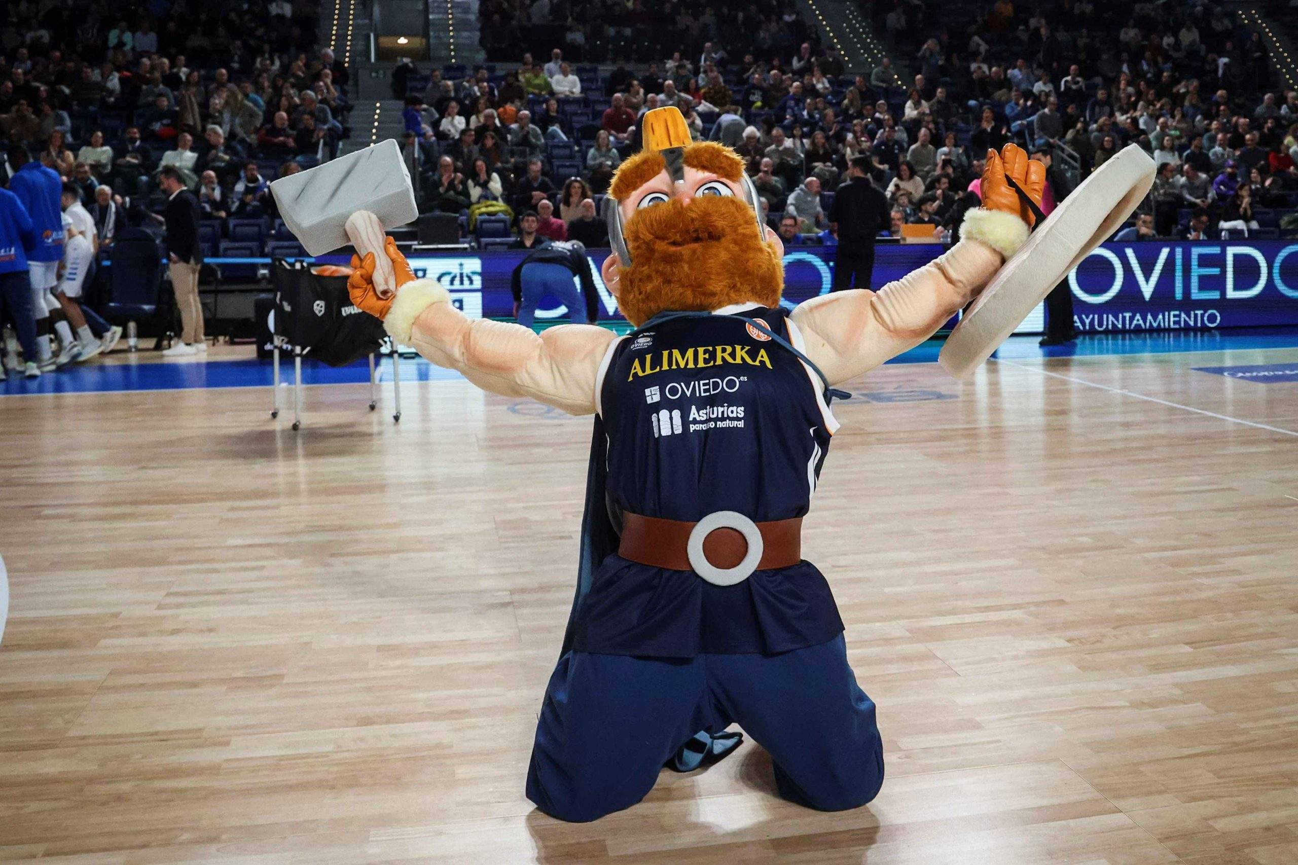 El Alimerka Oviedo Baloncesto presentó ayer en el encuentro ante Melilla Ciudad del Deporte a su nueva mascota, Pumarix. Un guerrero astur que reúne en su ancha figura el espíritu de lucha heredado de los 20 años en los que el club se ha desempeñado en el vetusto pabellón de Pumarín. Lo hizo de la mano de Cartonajes Vir, empresa familiar asturiana, que se ha sumado al proyecto como nuevo patrocinador del club.
