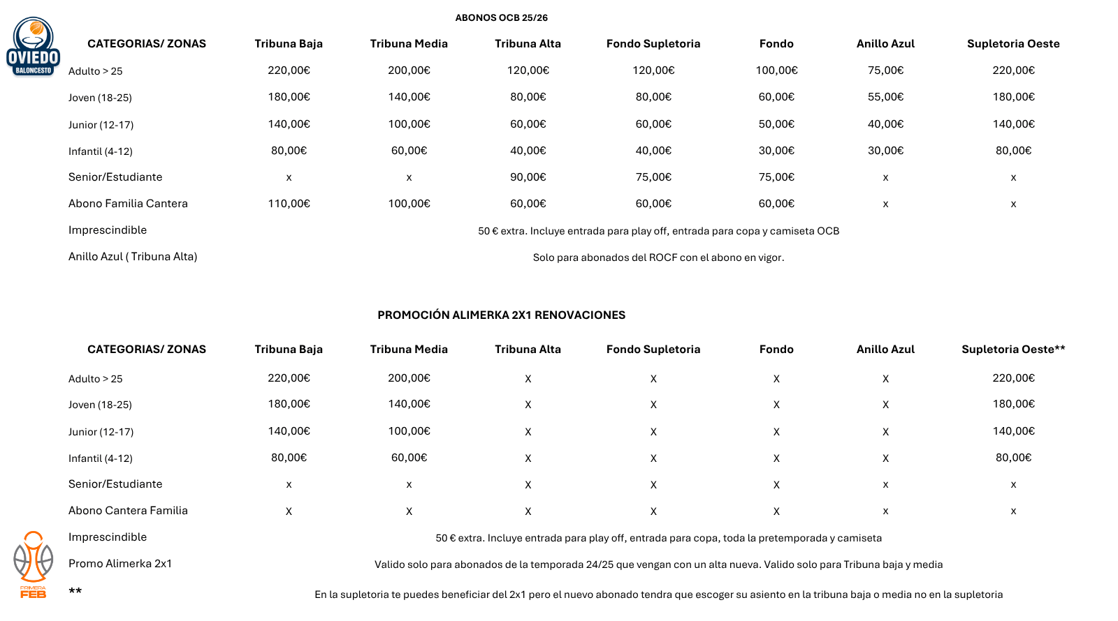 Además, nos enorgullece anunciar que contaremos con el apoyo y la colaboración del Real Oviedo, club hermano de nuestra ciudad, al que felicitamos por su reciente ascenso a Primera División, poniendo a disposición de sus abonados el denominado ‘Anillo Azul’. Esperamos que muchos de sus aficionados se sumen a esta nueva y apasionante aventura que estamos a punto de comenzar.