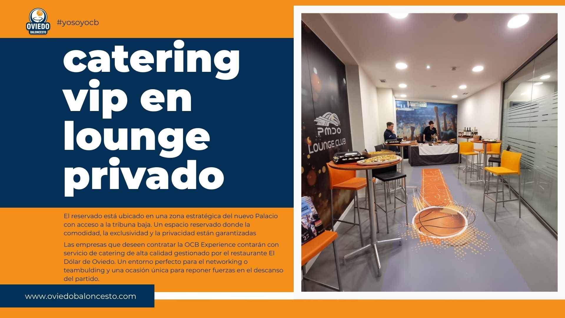 El reservado está ubicado en una zona estratégica del nuevo Palacio con acceso a la tribuna baja. Un espacio reservado donde la comodidad, la exclusividad y la privacidad están garantizadas Las empresas que deseen contratar la OCB Experience contarán con servicio de catering de alta calidad gestionado por el restaurante El Dólar de Oviedo. Un entorno perfecto para el networking o teambulding y una ocasión única para reponer fuerzas en el descanso del partido.