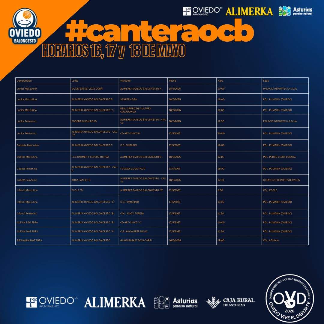 | Cadete Masculino 1ª | ALIMERKA OVIEDO BALONCESTO | RESTAURANTE VILLA BLANCA – C.D. MARCHICA-I.E.S.CARMEN Y SEVERO OCHOA/JOSE GARCIA | 04/02/2024 | 18:00 | POL. PUMARIN (OVIEDO) |
