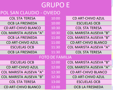 | ALEVIN MASCULINO ESCOLARES | COL. VENTANIELLES / FOZANELDI / ERIA / CARMEN RUIZ TILVE- | DESCANSA | ||