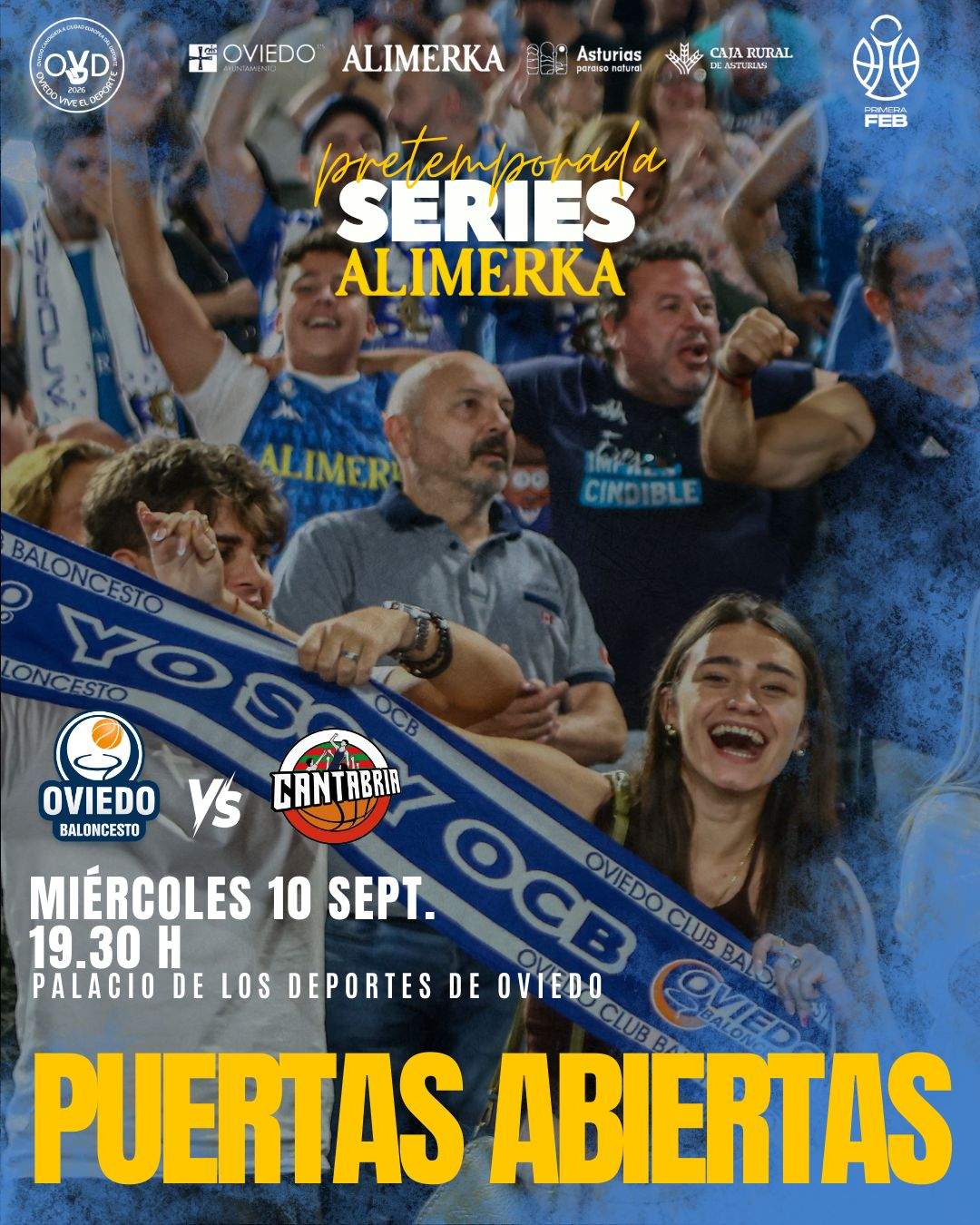 Tras la fantástica experiencia del primer partido del Alimerka OCB en el recién reinaugurado Palacio de los Deportes, el club celebra su segundo encuentro de las Series Alimerka de pretemporada este próximo miércoles 10 de septiembre a las 19.30 horas. Por ello, ha decidido que la jornada sea de puertas abiertas para todos los aficionados que quieran conocer de primera mano la instalación y acercar el espectáculo del baloncesto a todos los aficionados al deporte asturianos.